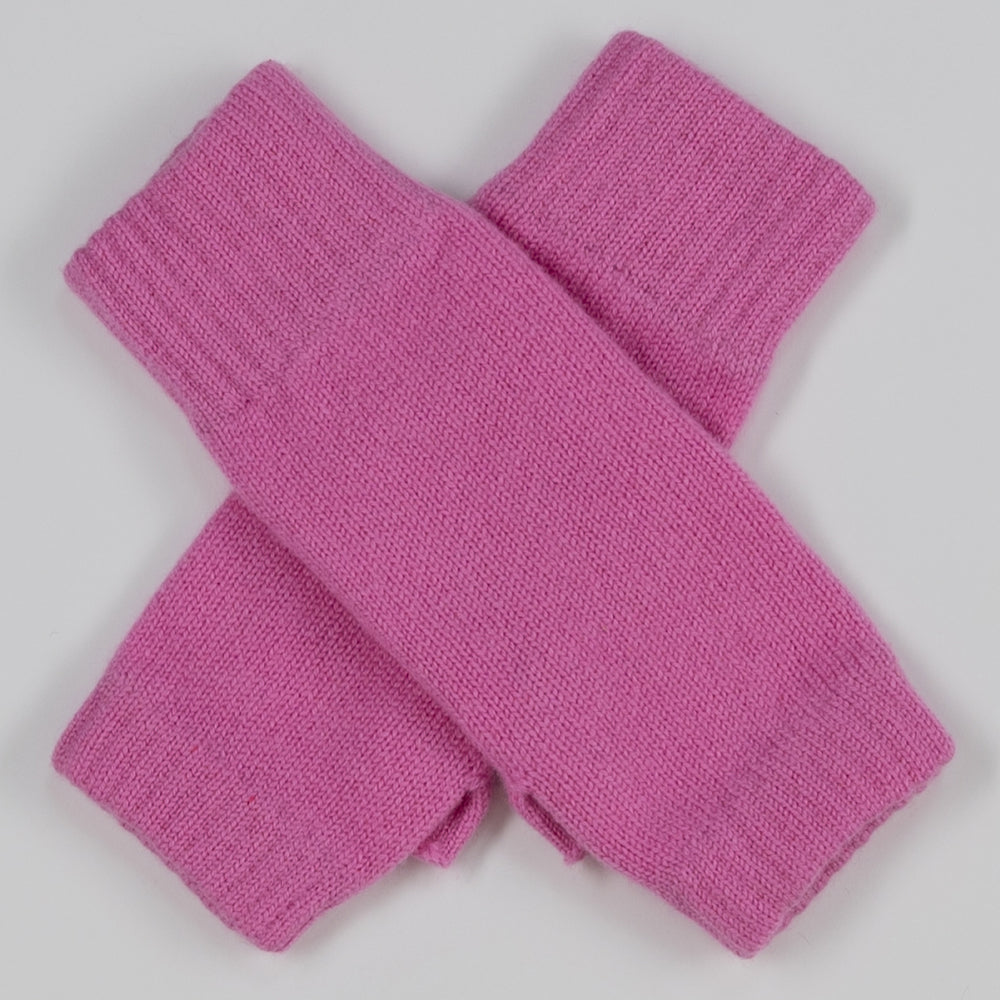 The soft tone of these baby pink cashmere mittens gives them a pretty feminine look. Knitted from the softest Scottish cashmere, these pure cashmere wrist warmers will ensure your hands stay warm all winter long. They have a double ribbed layer at the fingers and cuff for extra comfort and this prevents stretching or curling. attractive and practical they are perfect for those who have cold hands as they leave the fingers free for tasks you couldn't do with gloves.