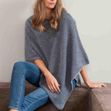 Our collection of 100% Italian cashmere ponchos has been extended to include three two tone versions. This navy blue and grey cashmere poncho and features a micro chevron design in grey on a navy background. Crafted from high quality pure cashmere it is luxuriously soft and warm. Stylish and versatile it doubles as a generously warm scarf for chilly winter days