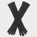 A must for chilly winter days are these super soft and warm elbow length long black cashmere gloves. Knitted in Italy from high quality cashmere yarn they can be worn full length or ruched down for a more relaxed look. They are hemmed at the top to prevent curling.