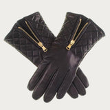 Black Leather Quilted Gloves with Cashmere Lining
