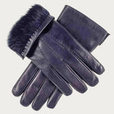 Men's Navy Rabbit Fur Lined Leather Gloves
