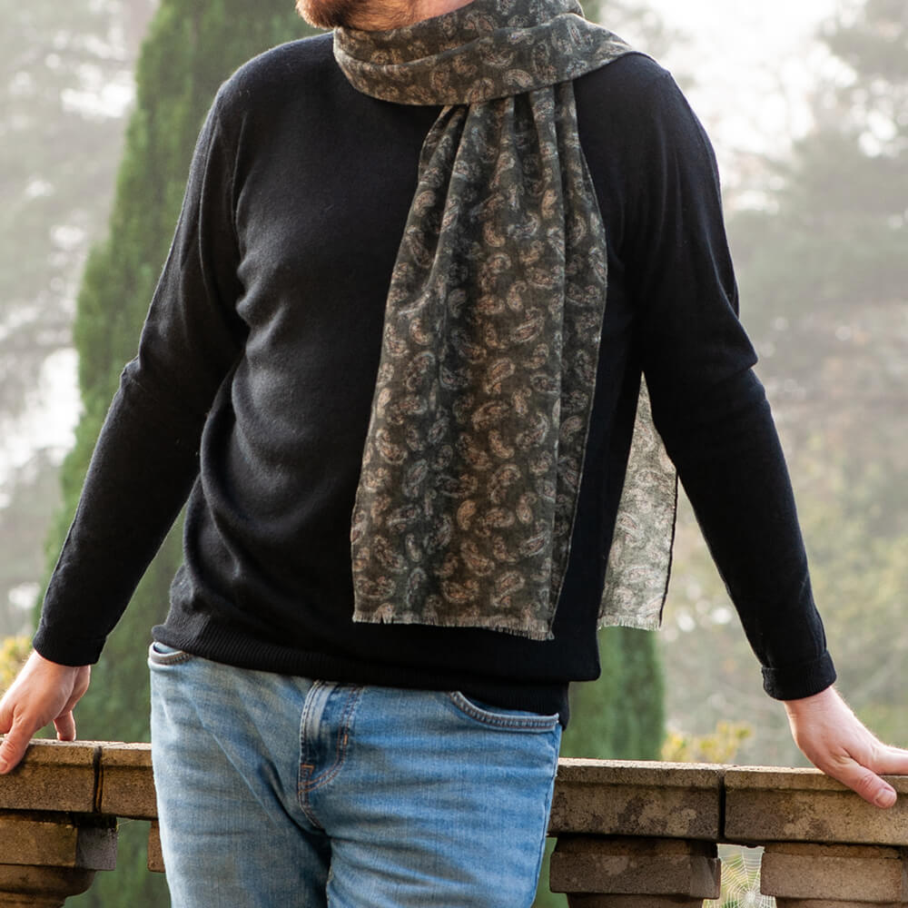 Tropea Olive Paisley Wool Scarf