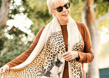 Leopard print scarves remain popular year after year and our customers tell us they are perfect accessories. This caramel leopard print cashmere and silk scarf is a new addition to our collection this season. Light warm and ultra soft it features soft neutral tones of browns and natural. The silk and cashmere in the fabric radiates a subtle sheen. Hand crafted in a skilful blend of silk and fine cashmere it is generously sized at 200cm x 70cm so can be draped elegantly and is large enough to wear as a shawl. It can double as a sarong too. Finished with short fringing.
