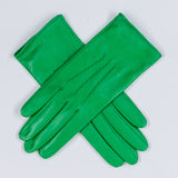 Step into the season with a hit of colour. Crafted from supple leather in a vivid garden-fresh green they are silk lined for a smooth look cool comfort. These gloves offer a radiant finishing touch to spring and summer dressing and are the perfect accessory for special events like weddings and garden parties. Undeniably chic they are finished with three points for a professional touch.