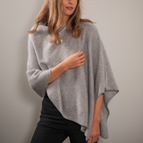 Flattering and stylish this ultra soft pure cashmere poncho is crafted in Italy from top quality cashmere. The two tone design features micro chevron motifs in ivory on a dove grey background. Luxuriously warm this versatile poncho works well with jeans, trousers and skirts. This timeless classic doubles as a generously warm scarf on chilly days
