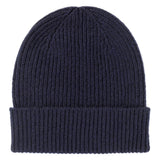 This classic navy cashmere beanie is soft, warm and versatile. It is a classic rib knit beanie made in Scotland from high quality 100% pure cashmere. Wear it as a traditional close fit style or turn down the cuff for a longer informal look.