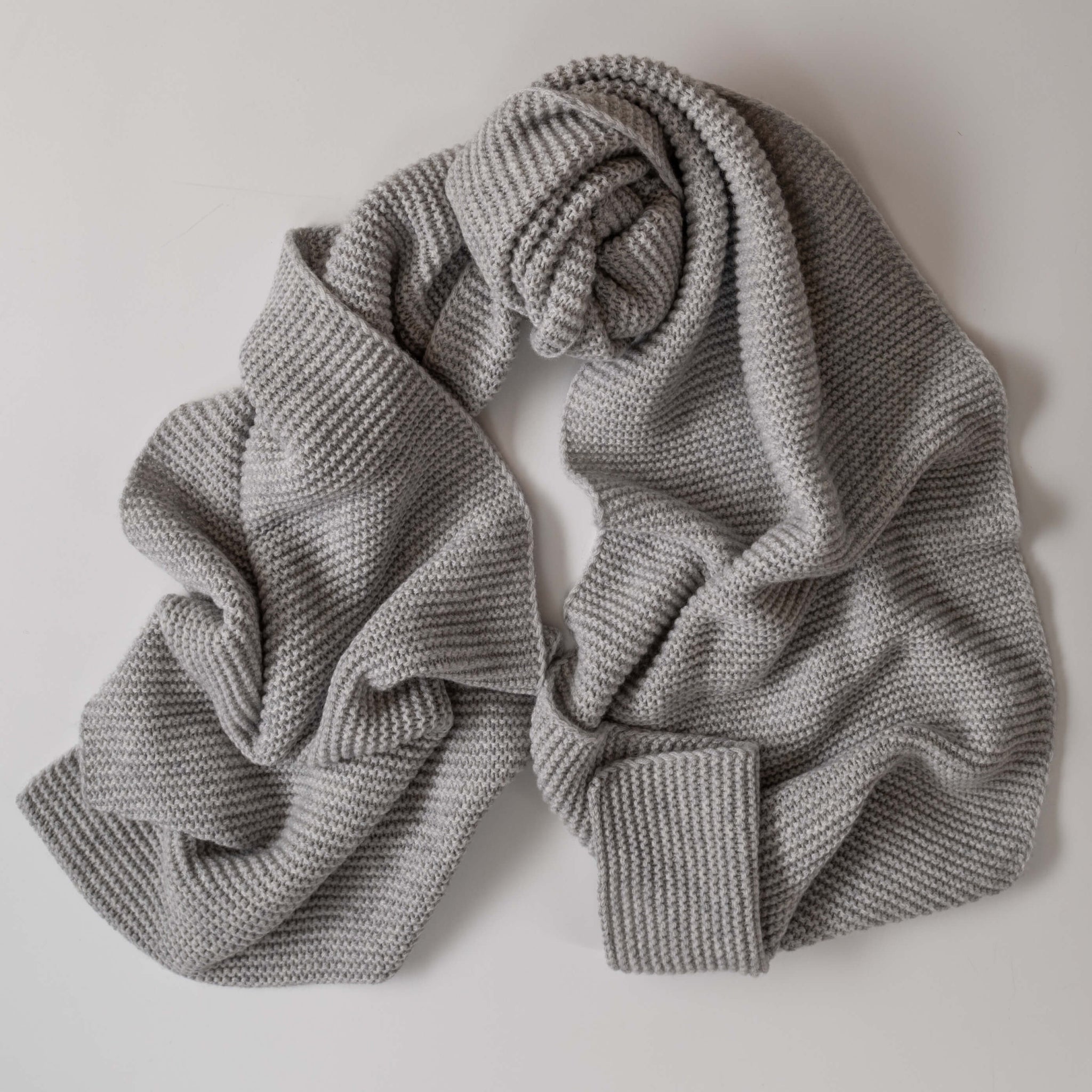 Long, lovely and luxurious this expertly crafted dove grey Italian pure cashmere scarf exudes understated elegance. Made from the finest cashmere the links knit four-ply texture gives it weight and substance. Offering wonderful warmth and softness the long length allows versatile styling whether draped, looped or double wrapped.