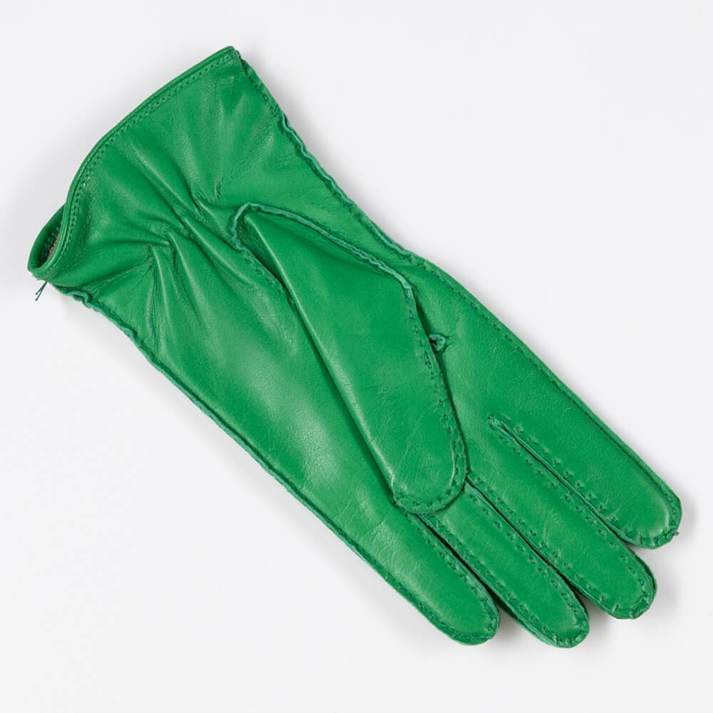 Kelly Green Hand Stitched Cashmere Lined Leather Gloves