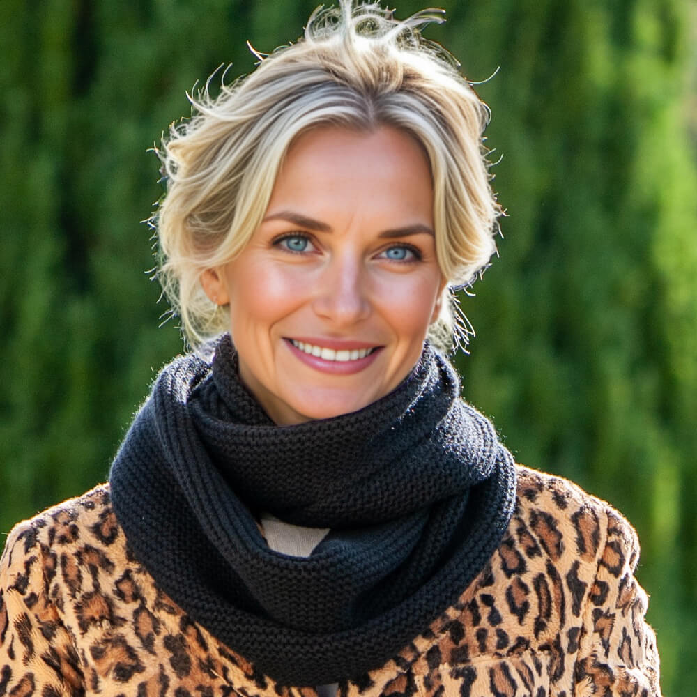 Enduring style and timeless elegance go hand in hand with this classic black Italian pure cashmere neck warmer. Exuding understated elegance it is made from the finest cashmere and the links knit four-ply texture gives it weight and substance. Offering wonderful warmth and softness it is long enough to double loop for those chillier days and the great benefit of the versatile snood is that it stays neatly in place.